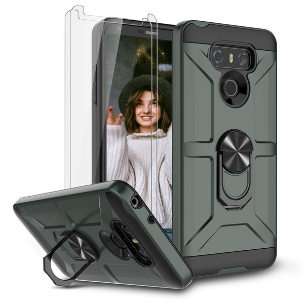 for LG G6 Case, Jeylly for LG G6 Plus Case with Screen Protector, 360 Rotating Ring Full Body Dual Layer Military Grade Belt Clip & Kickstand Holder Defender Shockproof Case for LG G6 2017, Green