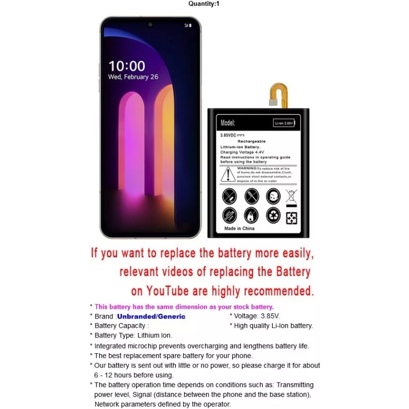For LG Long Endurance 5820mAh Rechargeable Battery for LG V60 ThinQ 5G LM-V600AM Phone