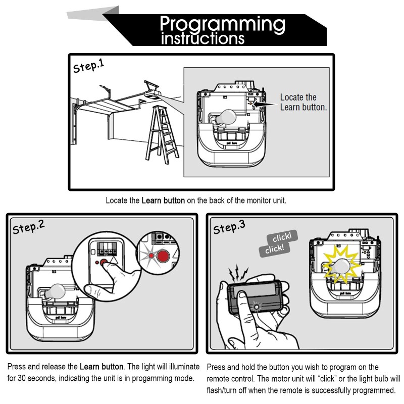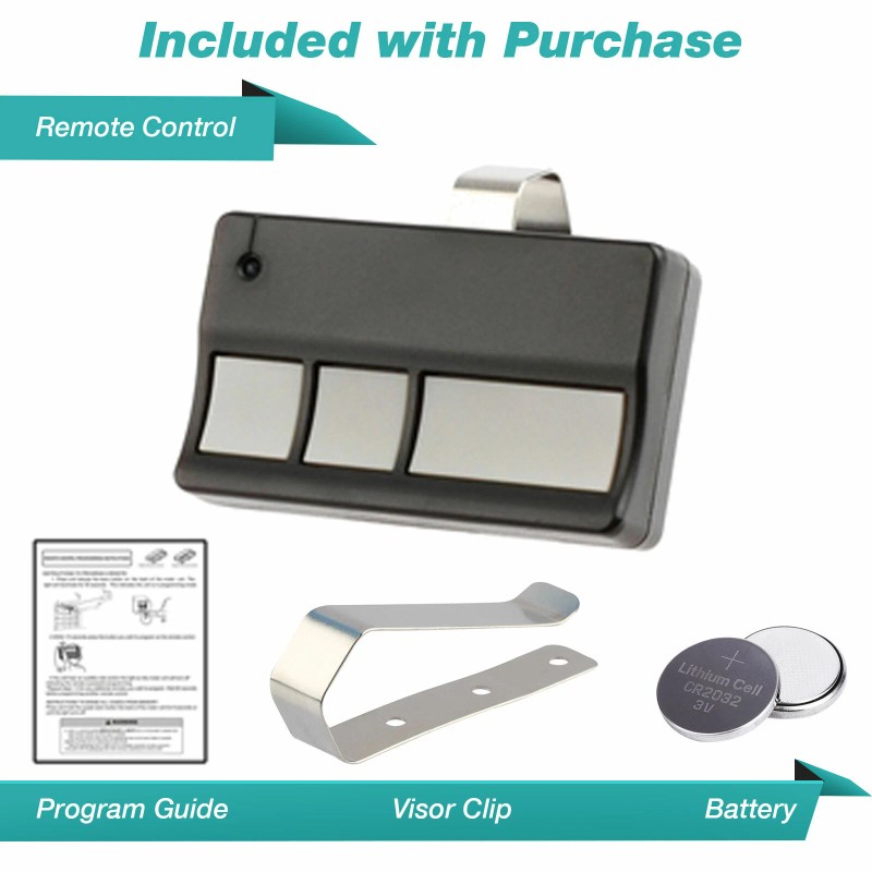 - Design: Three-button remote for controlling up to three garage doors or devices
