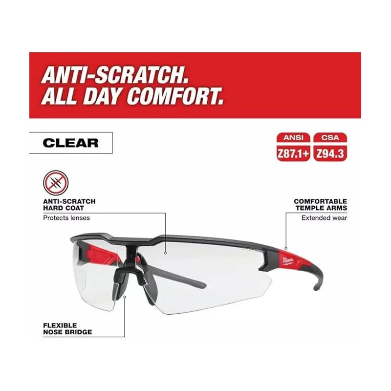 For Milwaukee 48-73-2010 Tool Tinted & Clear Anti-Scratch Adjustable Safety Glasses
