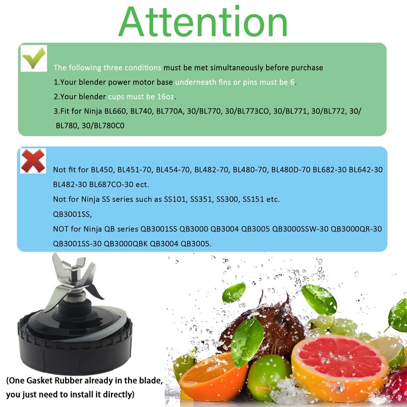 - Compatibility: 6 fins blender replacement blade fits for Ninja BL660, BL770, BL740, BL770-30, BL773CO, BL771, BL772, 1200W Ninja blender BL780, BL780C0.