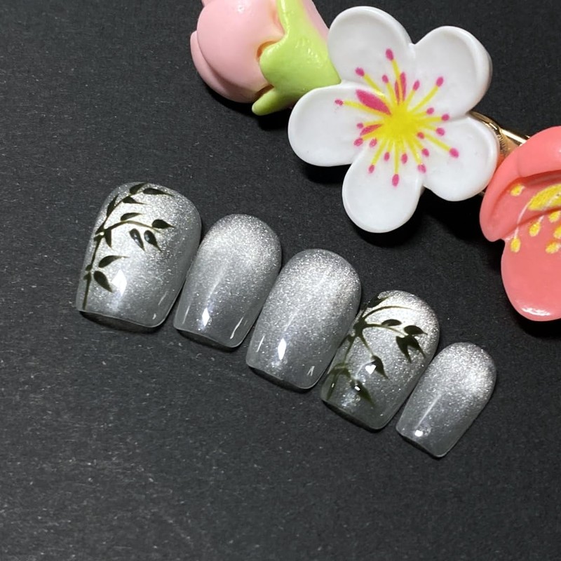 These hand-painted bamboo nail art stickers are perfect for expressing your unique style. The delicate green leaf designs add a natural, earthy accent to any summer look. Whether you're heading to the office or enjoying weekends outdoors, these faux nails allow you to switch up your manicure with ease. Each short, clear T-shaped sticker features a cat eye French tip and is accented by a single leaf image for a subtle, understated vibe. The lightweight bamboo material and non-toxic adhesive make these stickers comfortable enough for daily wear. Switch between full sets or mix and match designs for endless nail art inspo. Specifications: Product type: Handmade nails Material: Resin Color: as shown Size :S Quantity :10 pieces/box +4 tools How to use: 1. Use a nail file to polish the nail surface, grind the surface Angle, rinse and keep the nail clean and dry. 2. Use an alcohol prep pad to remove moisture and oil from your nails. 3. Choose the best nail size for each finger. 4. Apply appropriate amount of glue or jelly glue to the inside of the selected finger deck. 5. Attach the fake nail to the base of your finger and press for 25 seconds. 6. After applying, trim according to the shape and length of nail press you want. Do not touch water for 4 hours. 7. Please refer to the picture for detailed steps. How to disassemble? 1. Soak your nail in warm water and gently peel off the pre-bonded nail from the side after a few minutes. 2. Remove glue from fake nails. 3. Fake nails can be reused after the nail is removed, and you can keep the fake nail tip for next use Attention: 1. Due to manual measurement, please allow an error of 1-3 mm. 2. Due to different displays and lighting, there may be color differences between the picture color and the actual item. Please be informed.