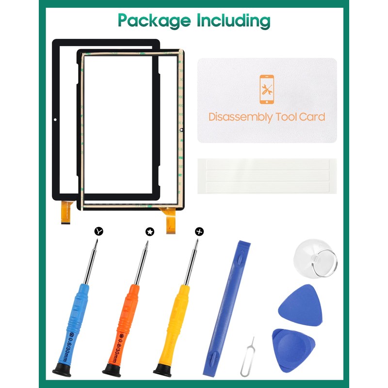 - [Full Protection Package]The parts is in full protection package ,which avoid damage during shipping, Package include: 1 x Touch Screen Digitizer Replacement for Onn 10.1 inch Tablet,1X opening tool kits,1X adhesive