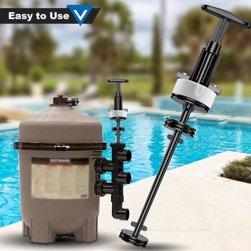 This 273241 piston rod assembly compatible with either sand type or Diatomaceous earth type pool filters. Easy to install. Simply remove the nut that secures the pool filter piston backwash valve and pull out the old piston rod. Then slide the new 273241 piston rod assembly back onto the valve