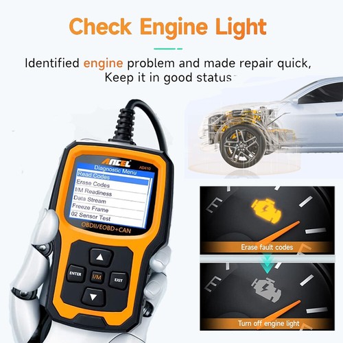 Elite Car OBD2 Scanner Auto Diagnostic Scan Tool Code Reader -Engine Check, Turn Off MIL, Full 10 OBD2 Functions, Read&Clear Codes, DTC Lookup, Lifetime Free Update- Ancel AD410 is a great upgrade from basic car code readers, read and erase codes when engine lights come on. Shows real-time live data reported by the ECU, engine temperature, O2 sensor readings etc.