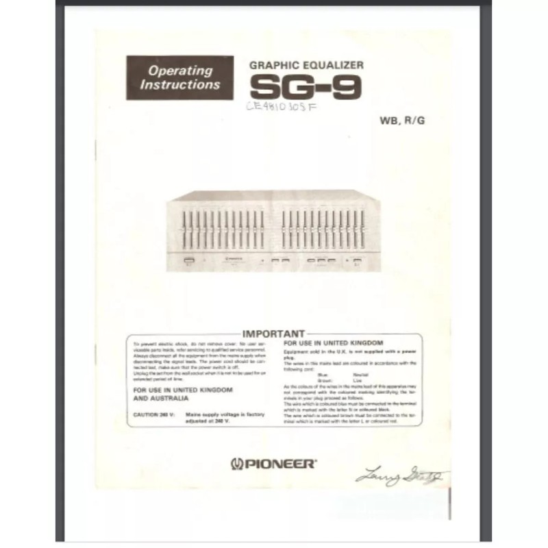 For Pioneer Pioneer SG-9 Receiver Owners Manual 10 pages comb bound gloss cover