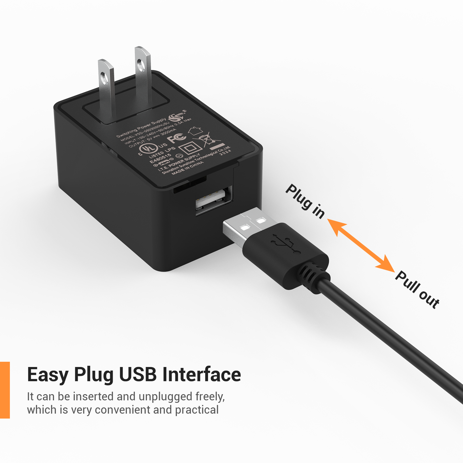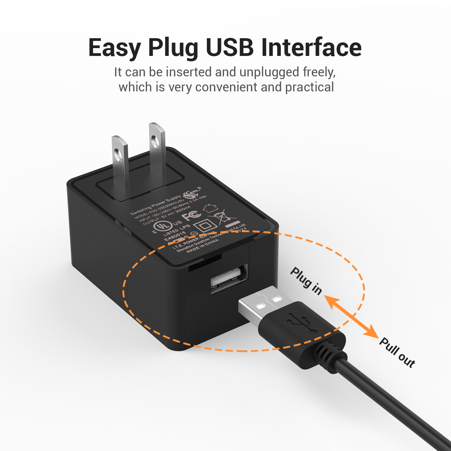 Input: 100V - 240V AC ; Output: 16W 5.25V 3A(Marked 5V 3A and manufactured with higher voltage at 5.2-5.4V) UL Listed USB C Adapter and Charger | 1.5m / 4.92 ft length USB Charger with Type-C Cable