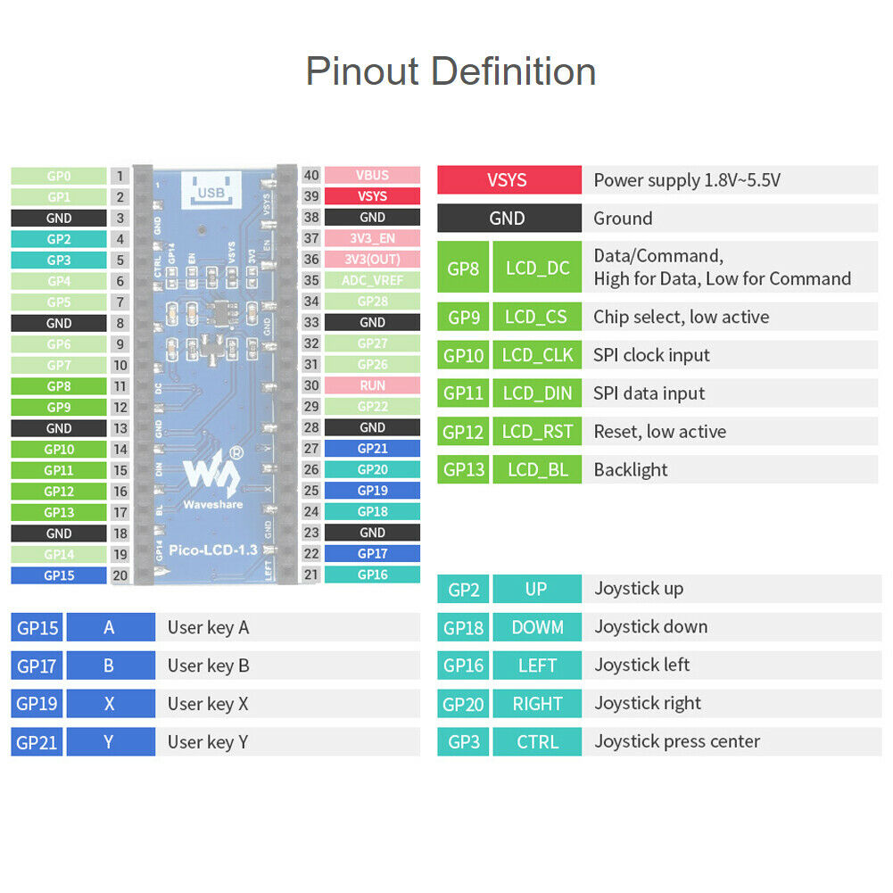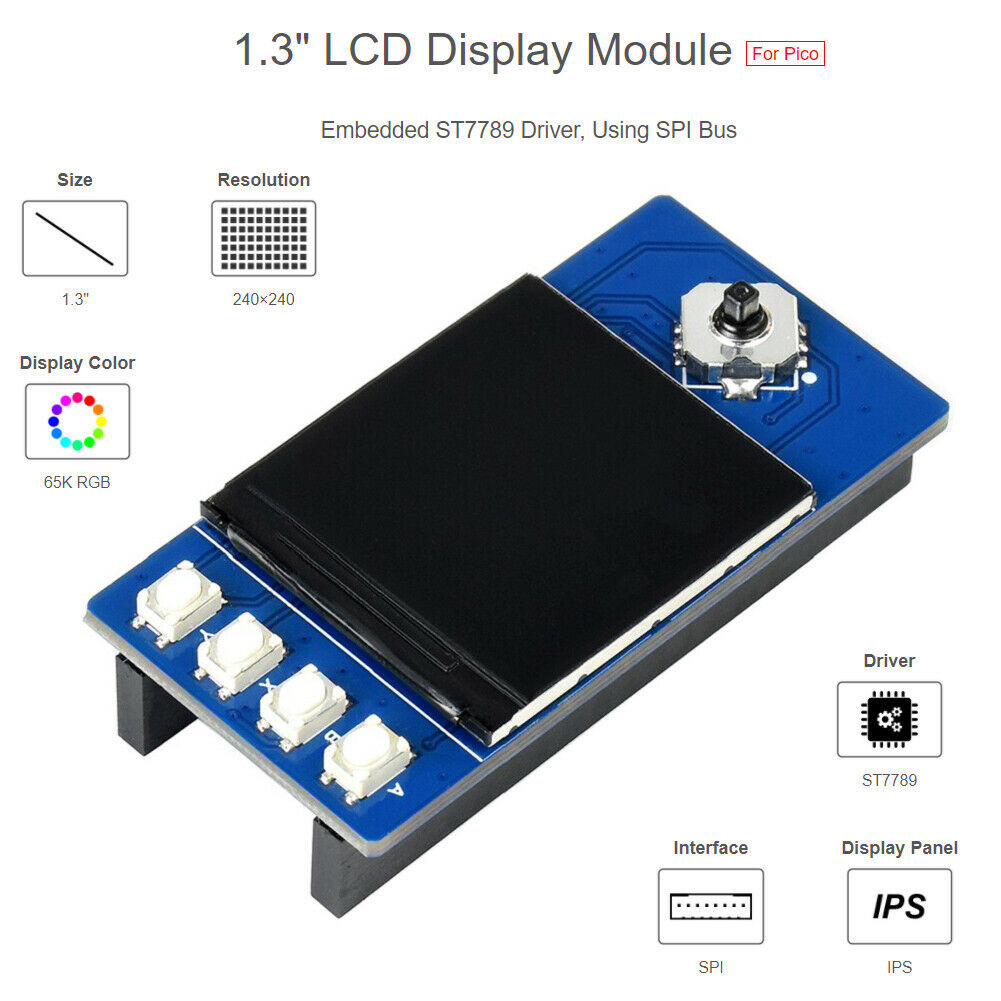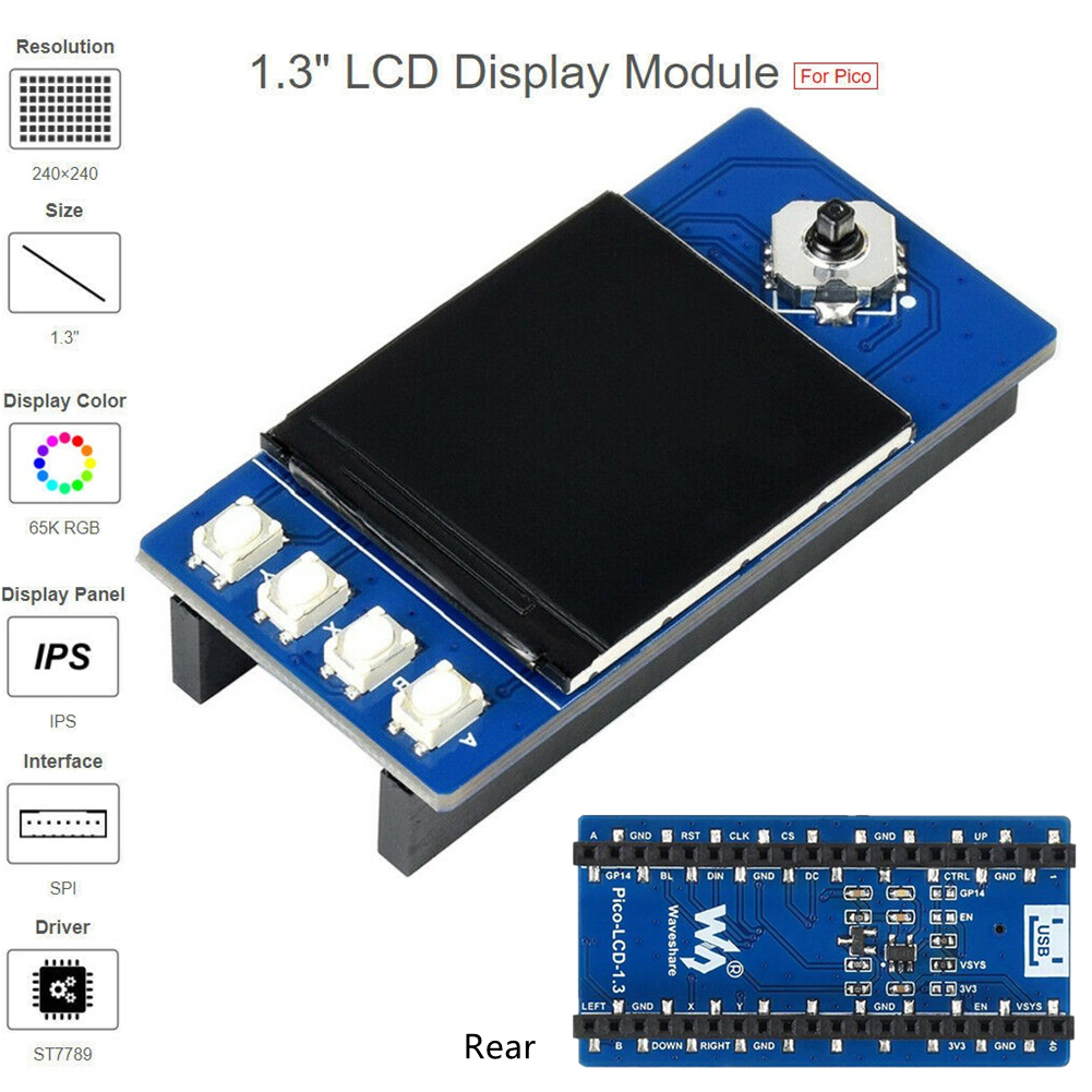 For Raspberry Pi Pico 1.3" LCD Display IPS Scrren Module ST7789 65K 240x240 For Raspberry Pi Pico