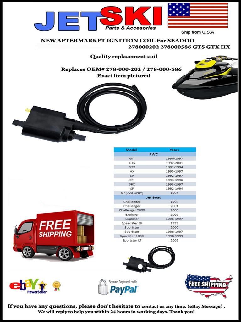 For Seadoo Ignition Coil Pack CDI SeaDoo GTI GTS GTX HX SP SPI SPX 278000202 278000586-