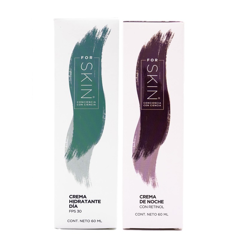 For Skin Kit duo: Crema facial hidratante de d铆a con protector solar 60 ml y crema facial de noche con Retinol 60 ml | Hidrataci贸n y protecci贸n diaria + renovaci贸n nocturna | Ideal para todo tipo de piel