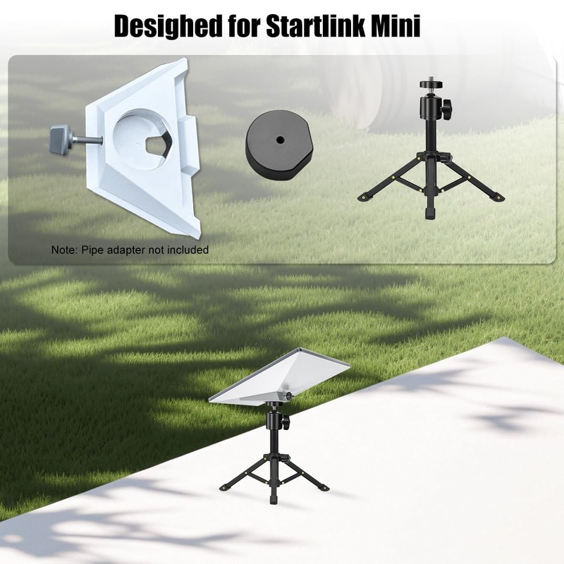 - Special for Starlink Mini Tripod: The small tripod with a starlink mini adapter is designed for seamless integration with the Starlink Mini (V4) antenna. It makes installation simple while ensuring a more secure connection, avoids loosening and sliding, and ensures the stability of the satellite antenna in various environments.