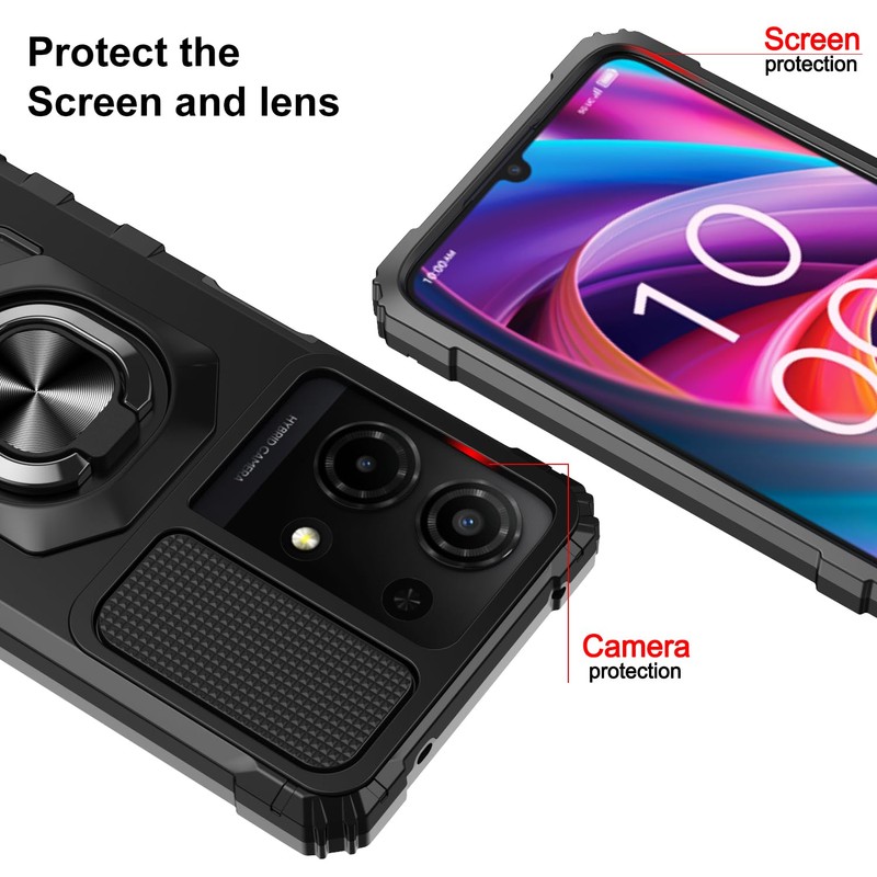 for TCL K32 5G / K33 5G Case with 1 Pack Screen Protector,Dual Layer Hybrid Heavy Duty Defender Protection,Sleek Rugged Reinforced Cushion Corner Kickstand Shockproof Bumper Cover Black