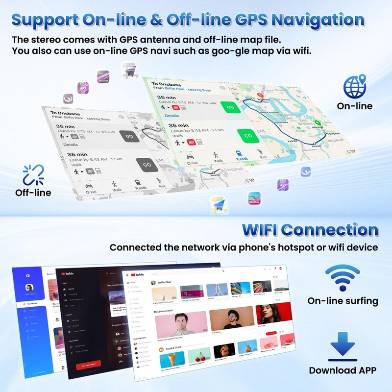- 【GPS Navigation/WiFi/Split Screen】Android carplay radio for Toyota Sienna built-in GPS navigation app supports online and offline maps. Conect to WiFi, you can browse website, watch online video and download apps. You can use split screen function to enjoy different contents on the same screen