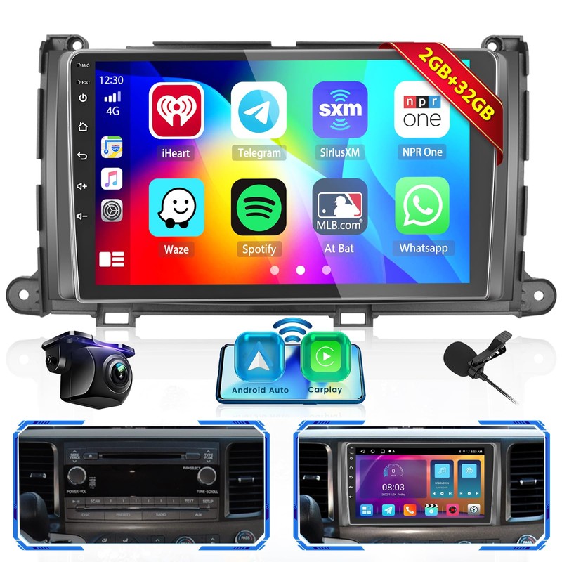 - 【Latest Android 13 System】2+32G ensures a smoothly simultaneous processing of multiple tasks, and you can download more apps on this car stereo for Toyota Sienna