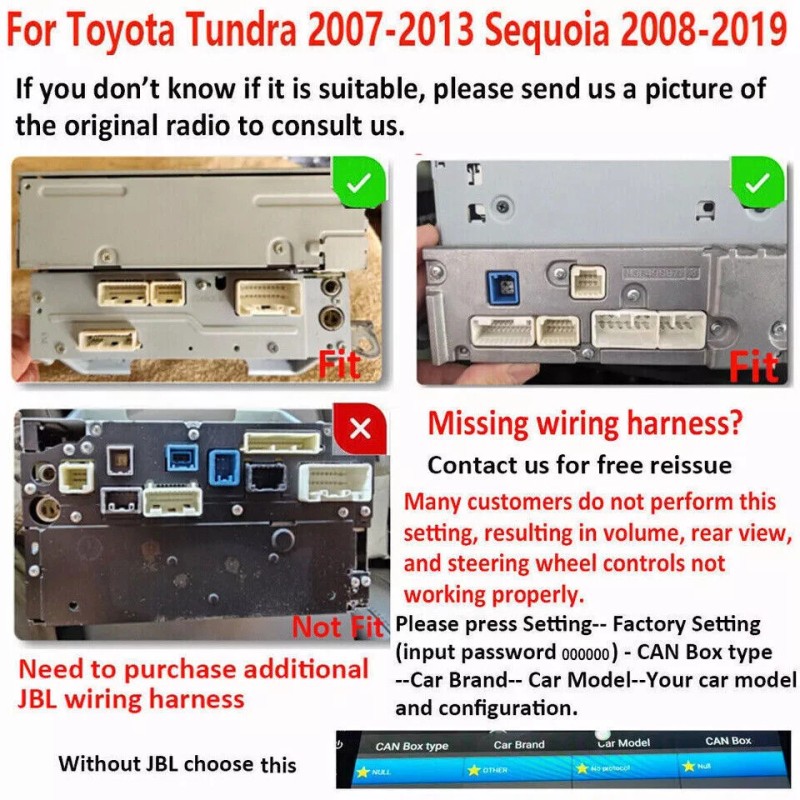 For Toyota Tundra 2007-2013 Sequoia 2008-2019 Android 13 Car Stereo GPS FM Radio