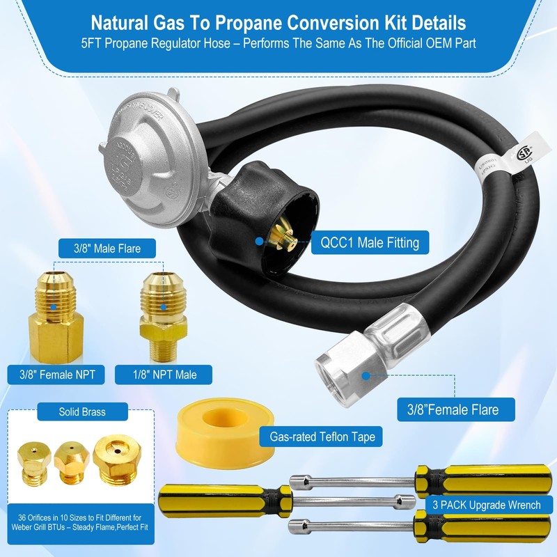 For Weber Natural Gas Conversion Kit,Natural Gas to Propane Conversion Kit for Weber Genesis/Genesis II/Spirit/Summit Grill–5FT Propane Regulator Hose for Weber Grills,36 Orifices,Fittings,Tools.