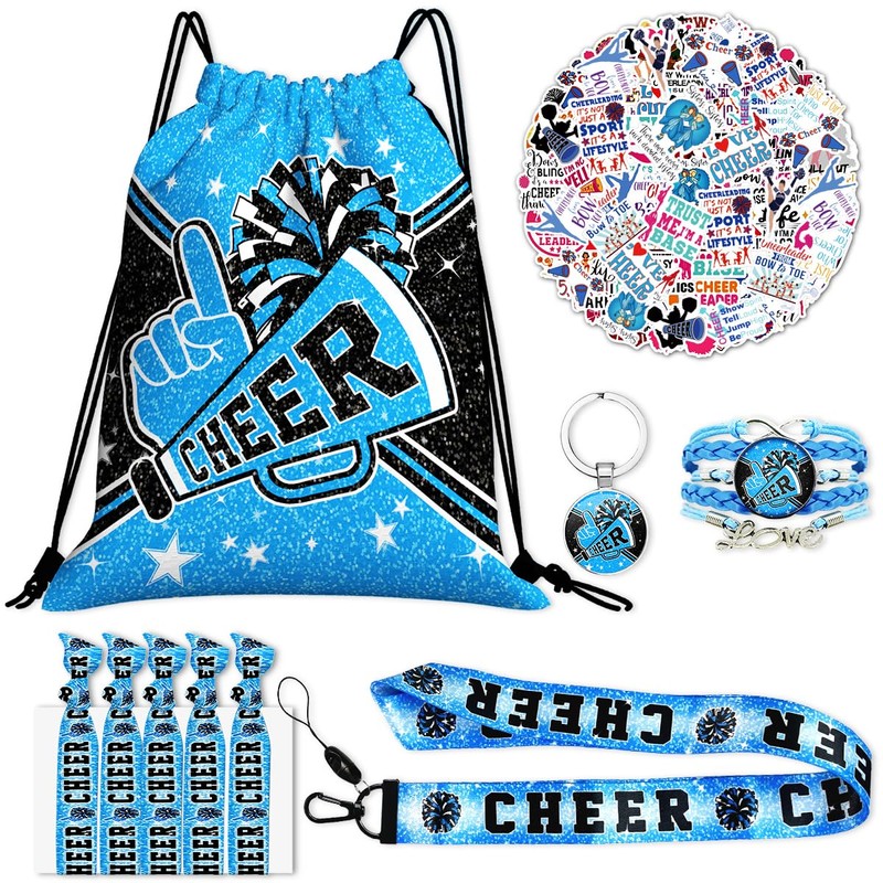 FORATIO Cheerleading Drawstring Bag Set Including Drawstring Sackpack Stickers Lanyard Keychains Bracelets Hair Ties 6 Pcs