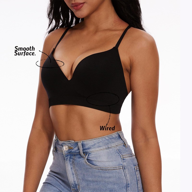 • Deep V Plunge Bra; Deep V plunging front.The plunge bra neckline is perfect for low-cut tops.High lighting your full cleavage. Featuring a daring deep V neck front, this bra is the perfect solution for low cut tops and dresses.