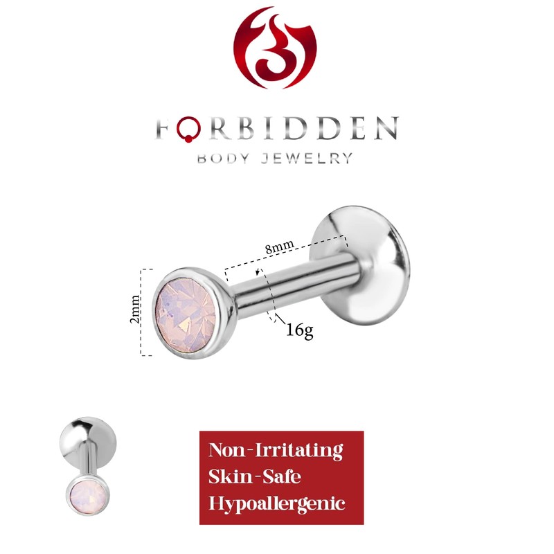 Forbidden Body Jewelry 16g Tragus Earring, Helix Earring & Labret Piercing, Internally Threaded Simulated Opal Stud, Metal