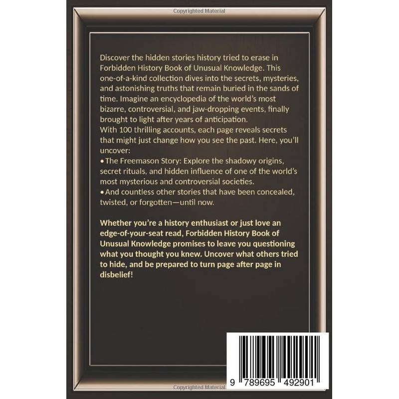 Unlock the Secrets They Don't Want You to Know! Prepare yourself for a journey like no other. "Forbidden History: Book of Unusual Knowledge" will shatter everything you thought you knew about our world. Packed with mind-blowing revelations, hidden truths, and unexplainable mysteries, here's what you'll find inside: Secrets of Human Evolution Revealed!Think you know where we came from? Think again. Discover advanced prehistoric technologies, shocking gaps in human history, and the tantalizing possibility that we've had extraterrestrial help all along. The Lost Civilizations You Were Never Taught AboutDive into the secrets of ancient Egypt, the mysteries of Atlantis and Lemuria, and the startling technological feats of the Sumerians. These civilizations knew things we can't explain even today. Suppressed Truths Hidden in Plain SightFrom the Vatican's secret archives to the hidden libraries of the ancient world, uncover the forces that have worked tirelessly to keep the truth buried. UFOs, Aliens, and the ParanormalDo UFOs exist? Are we alone in the universe? This book digs deep into unexplained sightings and the possibility of extraterrestrial intervention in our history. Who Benefits From the Lies?Expose the hidden agendas of secret societies, the systematic suppression of scientific discoveries, and the truths about World Wars that could rewrite history books forever. A Gift That Will Leave Them Speechless!Perfect for anyone who loves mysteries, conspiracies, and unraveling the hidden threads of history. Not for the Faint of HeartThis book will challenge everything you believe. Once you uncover these forbidden truths, there's no turning back.Whether you're a skeptic or a seeker, "Forbidden History: Book of Unusual Knowledge" will open your eyes to a world you never knew existed. Don't waitthis knowledge could vanish forever!