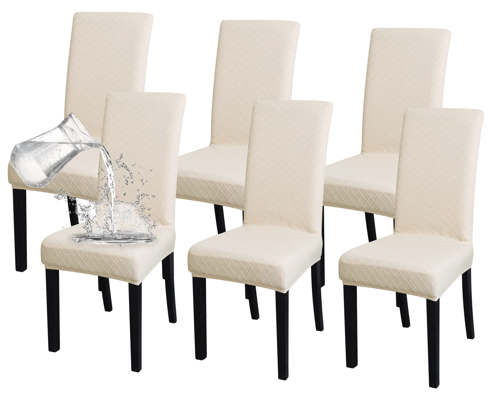 FORCHEER Waterproof Chair Covers for Dining Room Set of 6 Beige Jacquard Kitchen Chair Slipcovers for Parson Chairs Elastic Washable (6,Jacquard Beige)