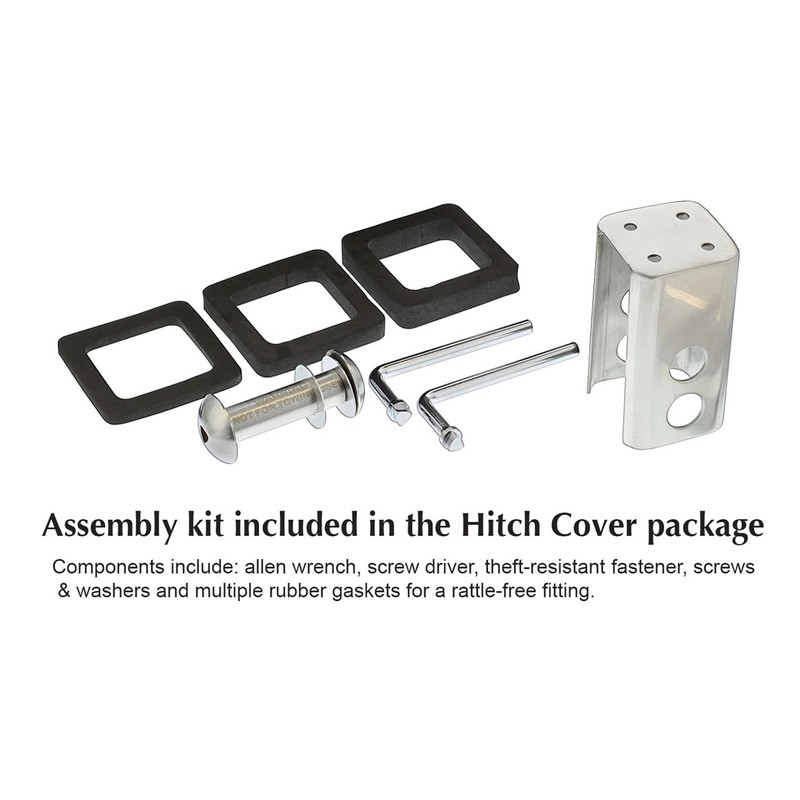- Hitch cover includes the following in its package: Standard 2 inch receiver post, 3-sound dampening foams, Theft-resistant locking bolt set.