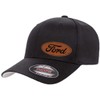 Ford Script Oval Logo Side Panel Leather Patch Laser Engraved Flexfit 6277 Athletic Baseball Fitted Hat Cap Black L/XL