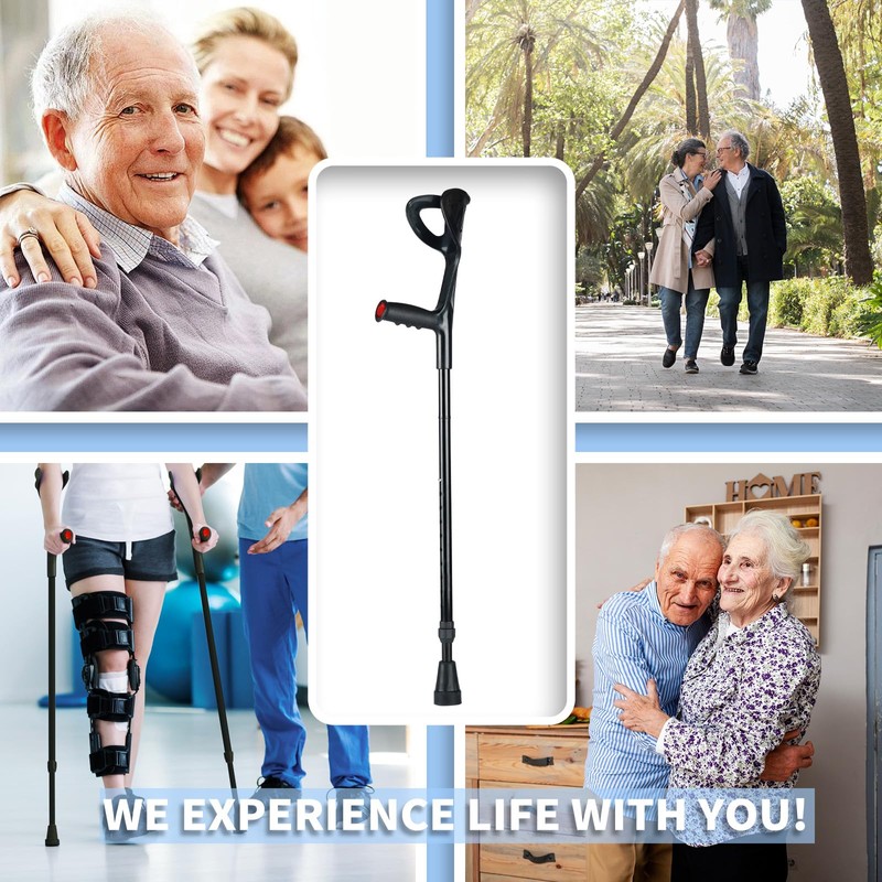 - Adjustable Design: These forearm crutches feature 10 height settings (36.6"-45.3") for a customized fit. Lightweight and comfortable, they provide reliable support for recovery, mobility needs, or rehabilitation, making them an ideal crutch suitable for both men and women