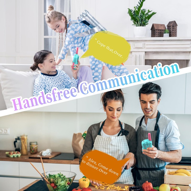 Little adventurers can focus on exploring – the voice-activated function automatically transmits when speaking, ideal for treasure hunts or outdoor missions.