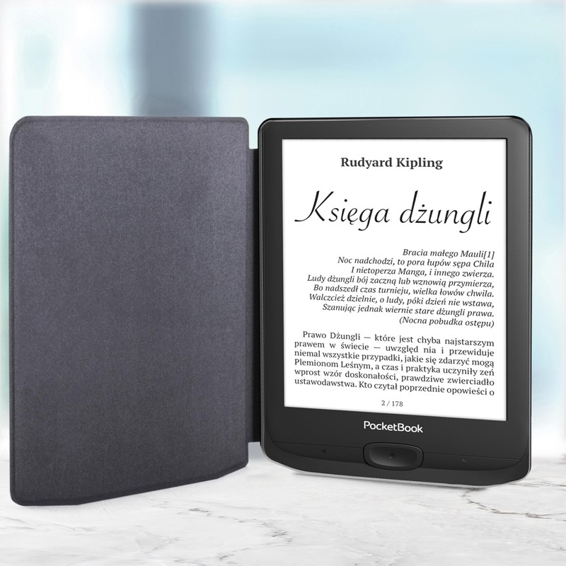 Smart auto sleep wake function: opening the protective case wakes up the Pocketbook Touch Lux 5, closing puts the tablet to sleep mode. This feature significantly extends battery life