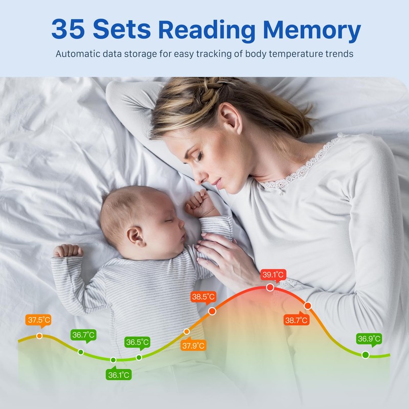 • ✔️User-Friendly: The independent button design enhances your measureing experience, making it more convenient to take measurements. Simply press the measurement button, and within 1 second, you'll receive an accurate temperature reading. Additionally, the mute button ensures that your family is not disturbed during their sleep.