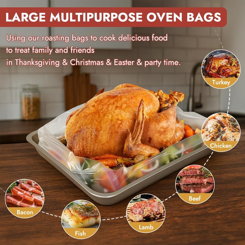 - OVEN & FREEZER SAFE, BPA-FREE – Crafted from food-grade, BPA-free material, these oven cooking bags withstand temperatures up to 400°F (205°C) and are freezer-friendly for advanced prep. Safe, durable, and reliable for everyday cooking and holiday feasts