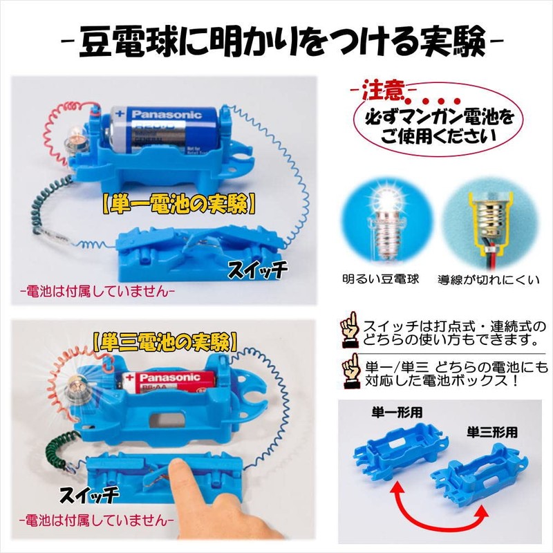 ★Please use manganese batteries (if you accidentally shorten the circuit, the metal parts of the conductor will generate heat and cause burns or fire).