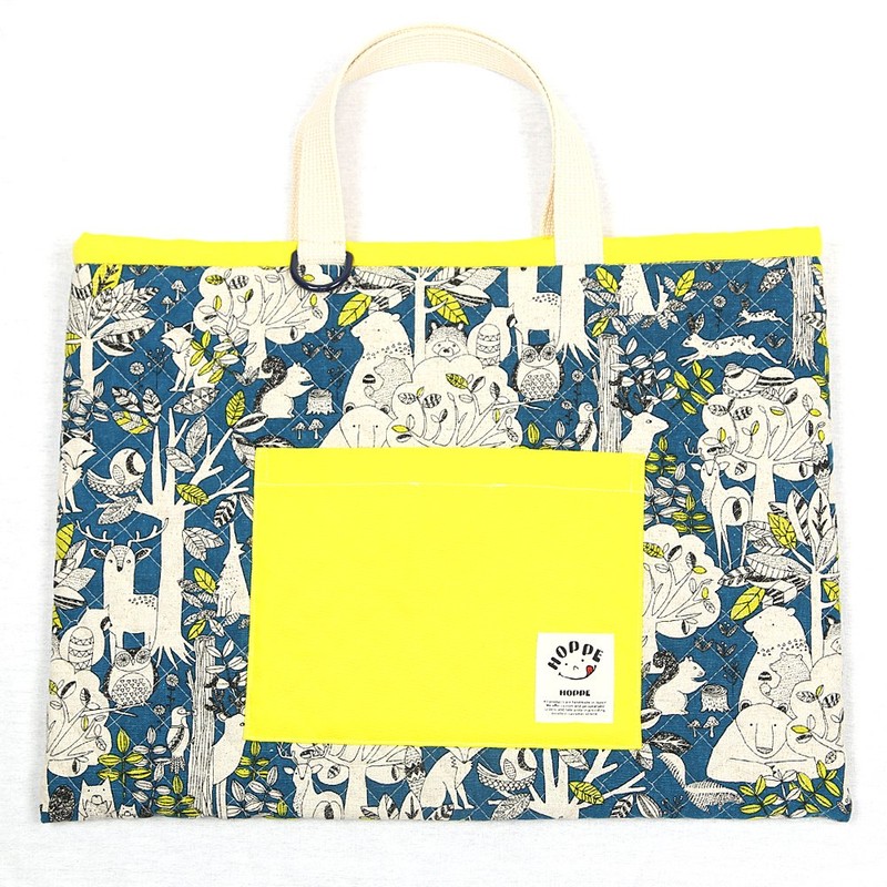 Lesson Bag: HOPPE original fabric. A cute print of a wild forest animal. The muted texture of this linen blend is also recommended for adults.