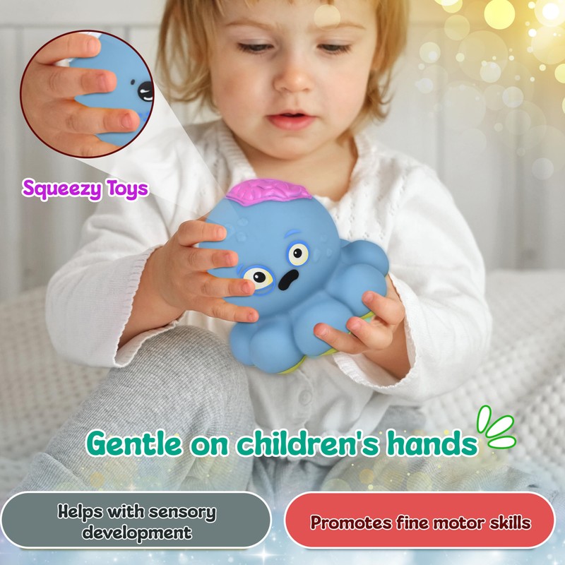 - ENCHANTING OCTOPUS: Delight in a charming octopus rubber toy made with a unique personality that is sure to intrigue kids aged 3 and up. Each vibrant and whimsical design sparks joy and curiosity in young minds, capturing their imaginations and providing endless play opportunities.
