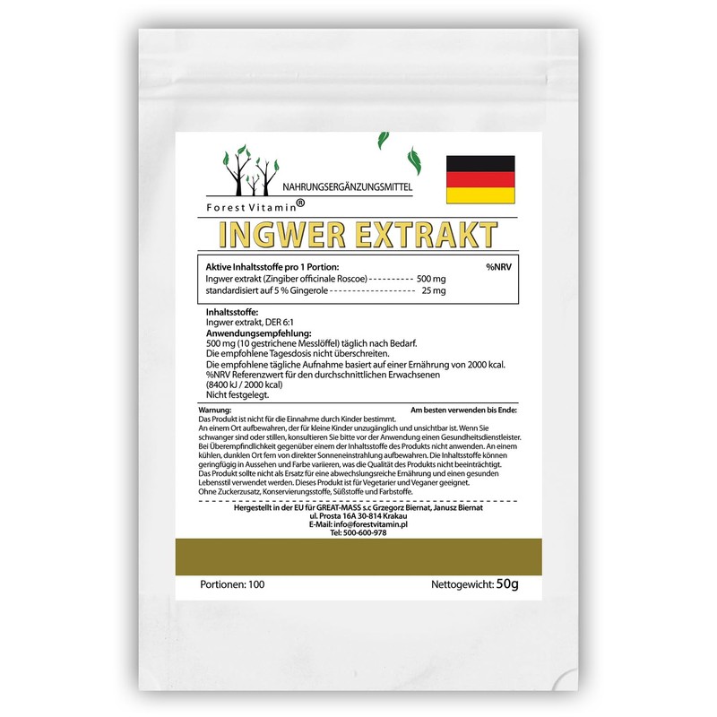 Forest Vitamin - Ginger Extract - 50 g Powder - Ginger Extract - Standard 5% Gingerol Content - Immune System, Health and Beauty