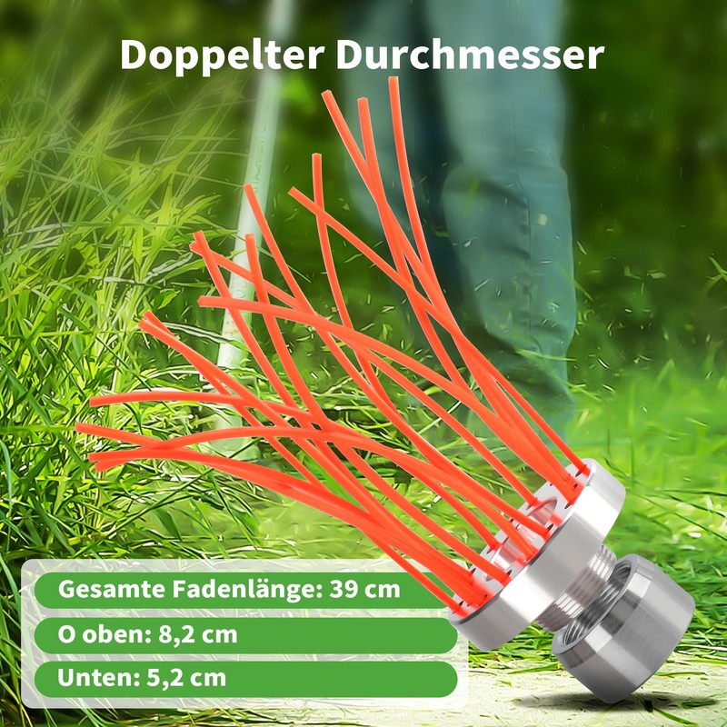 • Grass trimmer attachment: this weed trimmer not only protects surfaces (avoid damage caused by steel brushes), but also your device. No vibration / imbalance thanks to lightweight aluminium and 3 mm threads, thread count reducible for device relief