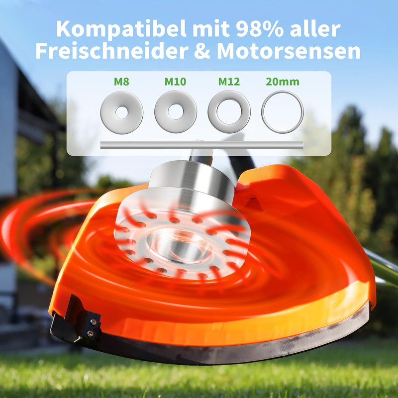 • Easy to use: our weed brush is suitable for most trimmer models. Simply place our brush cutter head on the top screw of the straightener with straight shaft and attach it with washer and nut. Tips: The head thread is a left-hand thread for left-hand mowers and can be used flexibly for both amateurs and professionals up to 10,000 RPM