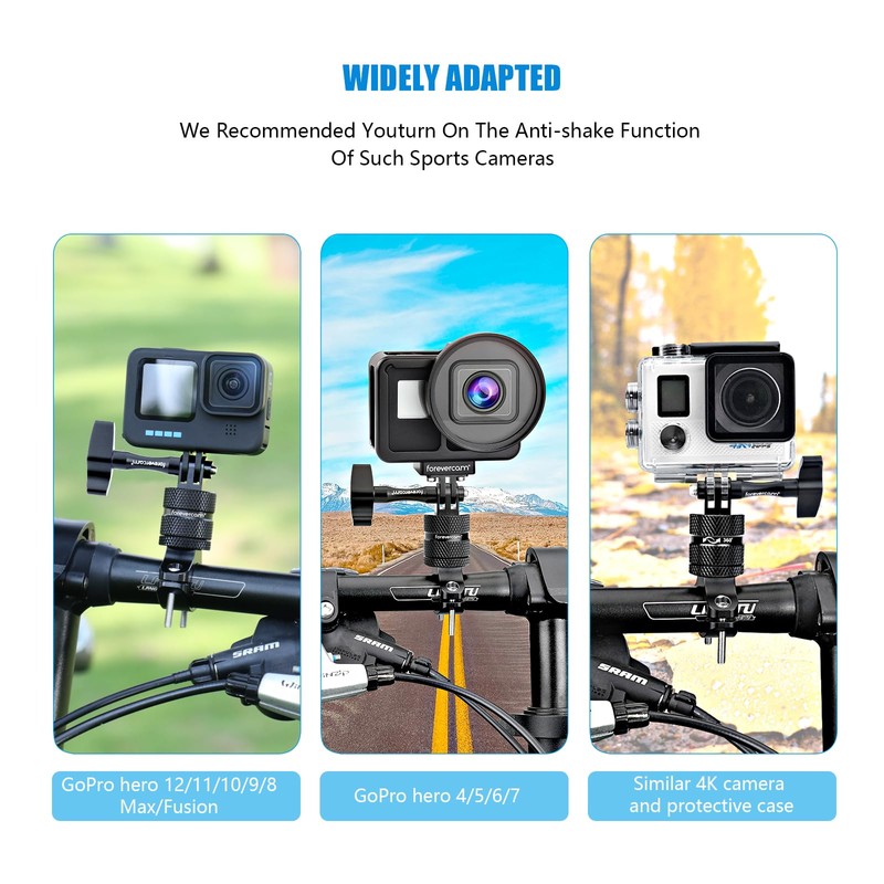 Forevercam 360 Degree Rotation Aluminium Alloy Handlebar Bike Mount for All GoPro Models Action Cameras Mountain Bike Mount