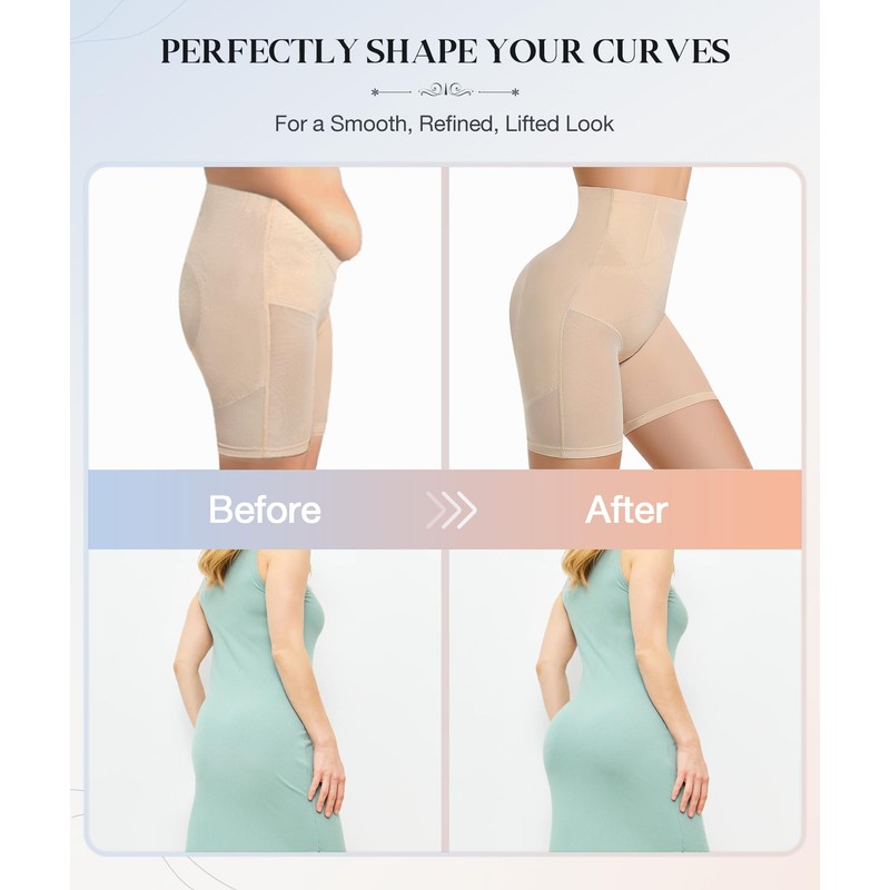 • [SMOOTH THIGHS SLIMMER]-Designed with a flattering shorts cut, tummy control shapewear shorts is not only a thigh-smoothing layer but prevents inner-thigh chafing. It slims and tightens you legs, creating a toned, polished look, while providing full coverage as the perfect slip shorts for all kinds of dresses, ensuring privacy and a smooth fit.