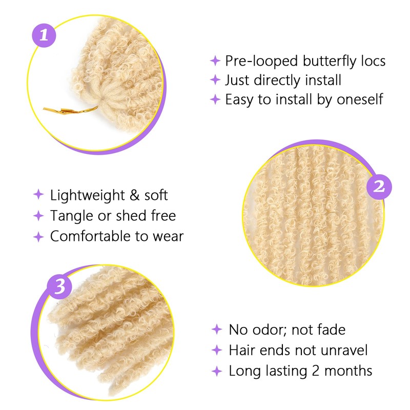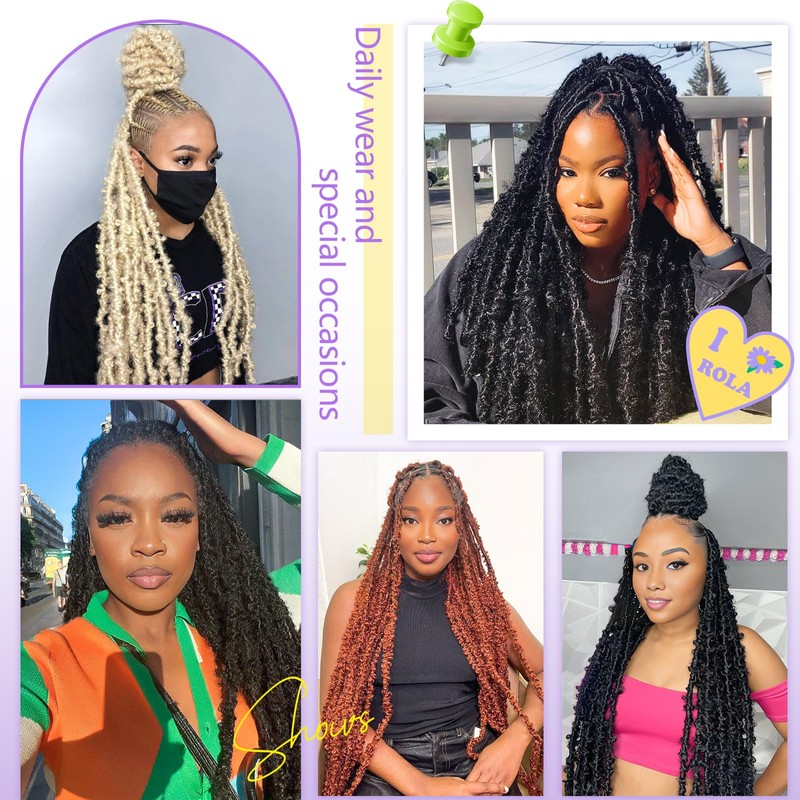 - Crochet Butterfly locs color: Black butterfly locs, burgundy butterfly locs, ginger butterfly locs, blonde faux locs, brown soft locs, gold faux locs