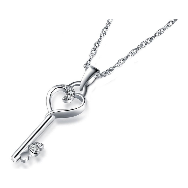 - Pendant features a heart/key design with cubic zirconias accented