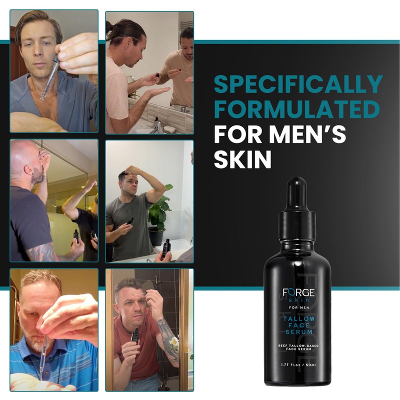 - ADVANCED ANTI-AGING FORMULA: Our Forge Skin Anti-Wrinkle Night Men Skin Care Kit Serum combines Essential Ingredients, Beef Tallow, Vitamin C to visibly reduce fine lines and wrinkles. This potent beef tallow moisturizer blend enhances skin elasticity, promotes collagen production, and helps you wake up with smoother, younger-looking skin.