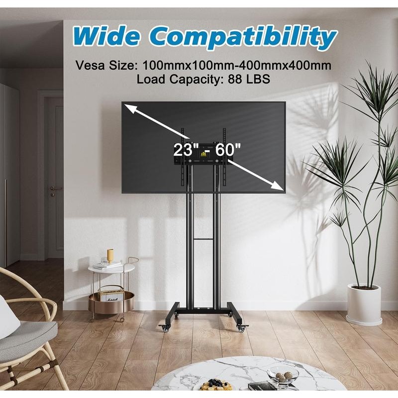 Forged Stand Mobile TV Cart withWheels for 23-60 Inch LCD LED OLEDFlat Screen Curved TV, Rolling TVStand Height Adjustable Tilt Holds 88Lbs, Wall Mounted Full Motion MobileTV Stand Rolling TV Stand tvcartPortable TV full motion lgoled temper glass base