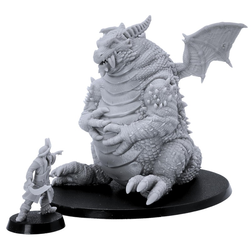 Forged Terrain Fat Sitting Dragon Miniature | 28mm-32mm Scale | Fantasy RPG & Tabletop Wargaming | Unpainted Resin Model