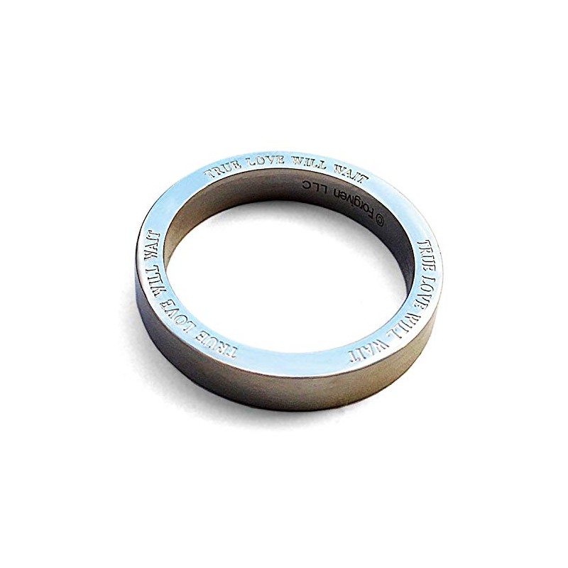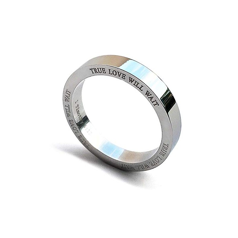 True Love Will Wait Ring is hypo allergenic. This Ring is a side engraved Ring that features all the text engraved only on the side of the ring. This ring offers a classic hypo allergenic stainless steel construction with smooth silky finish. This beautiful ring features our unique Christian style that we all ways try to achieve since 1993. This ring is fully functional because the outside of band looks plain and glossy all the while the text is on the side of the band, which is kind of neat. This ring is a more than unique Christian jewelry design with deep crisp engraved letters that look fantastic all the way around the Ring - Ring sizes 6-10 -Ring - Measures a little over a 1/8 inch wide