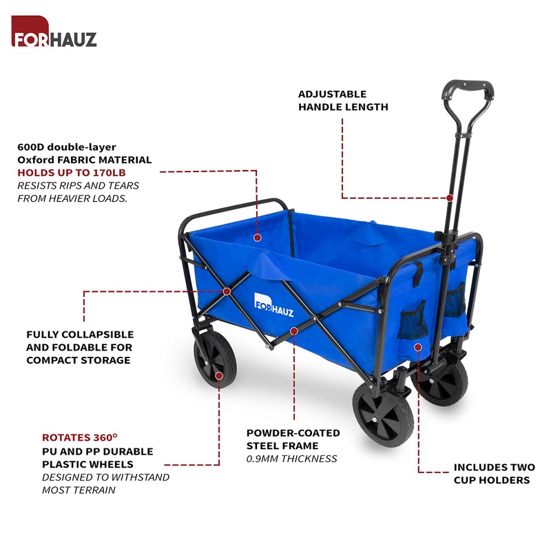ForHauz Folding Collapsible Heavy Duty Wagon Cart with All-Terrain Wheels for Outdoor Utility, Beach and Garden, Blue