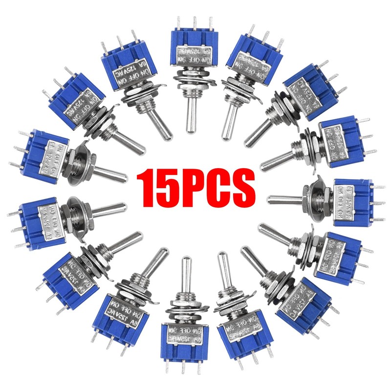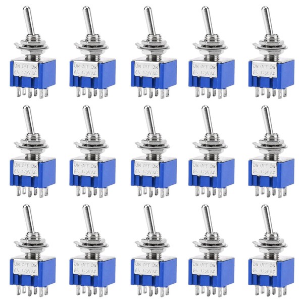 FORIOT 15pcs MTS-203 Mini Toggle Switch 6A-125V / 3A-250V AC Toggle Switch 6 ...