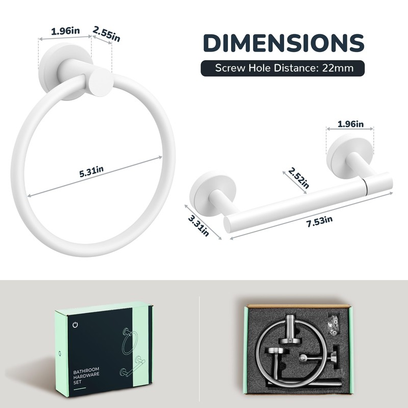 FORIOUS Toilet Paper Holder Wall Mount, SUS304 Stainless Steel Double Post Pivoting Tissue Roll Holder and Hand Towel Ring Set for Bathroom, RV, Bathroom Hardware Accessories Set, White