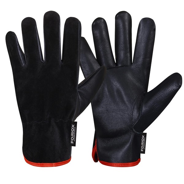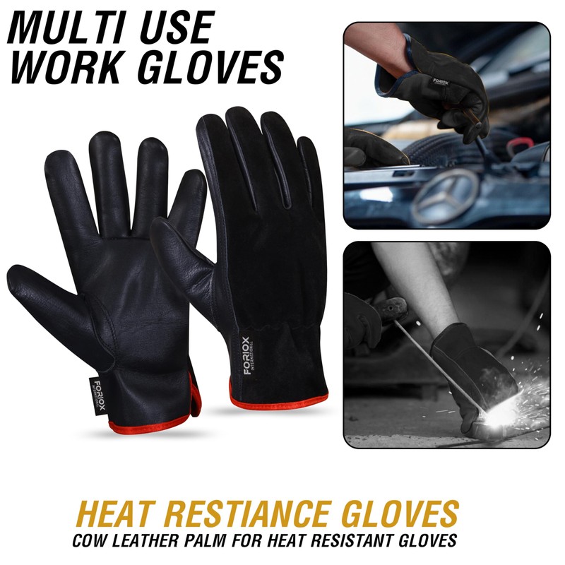 Foriox International Working gloves for Multi Purpose use Leather Gardening Mechanic Garden Building Heavy Duty Utility Gripper Men Women (Black, Medium)